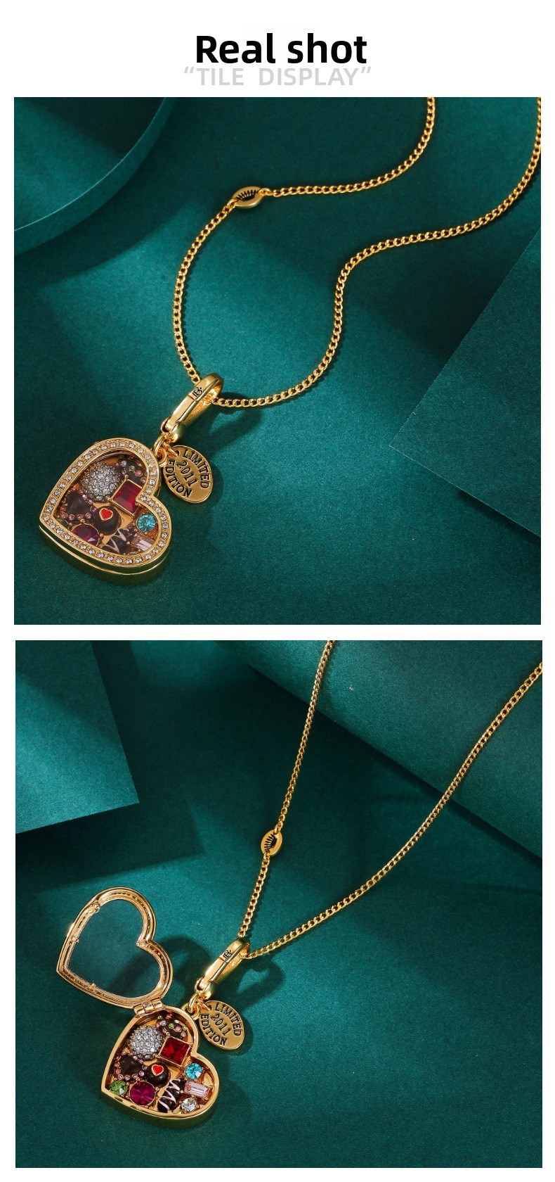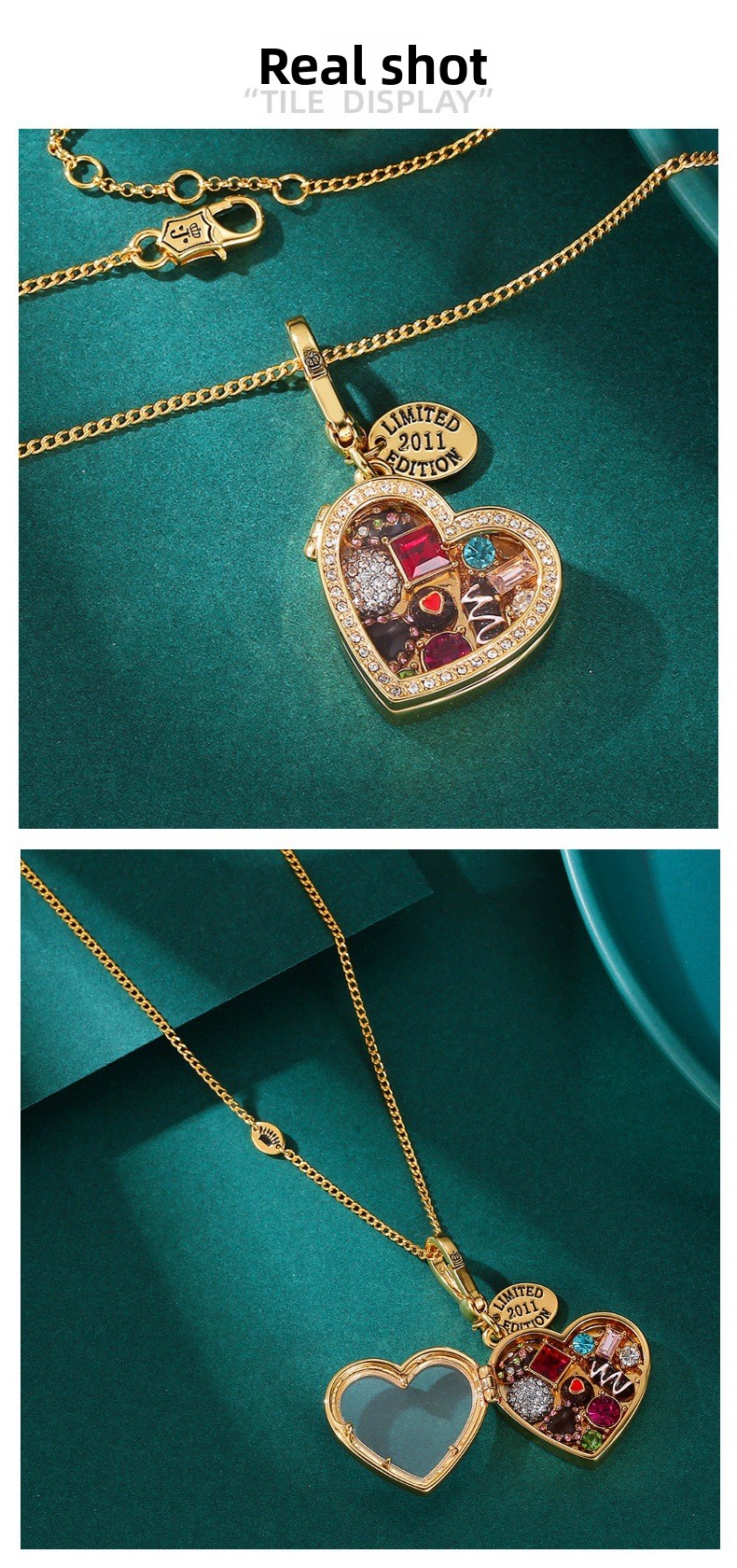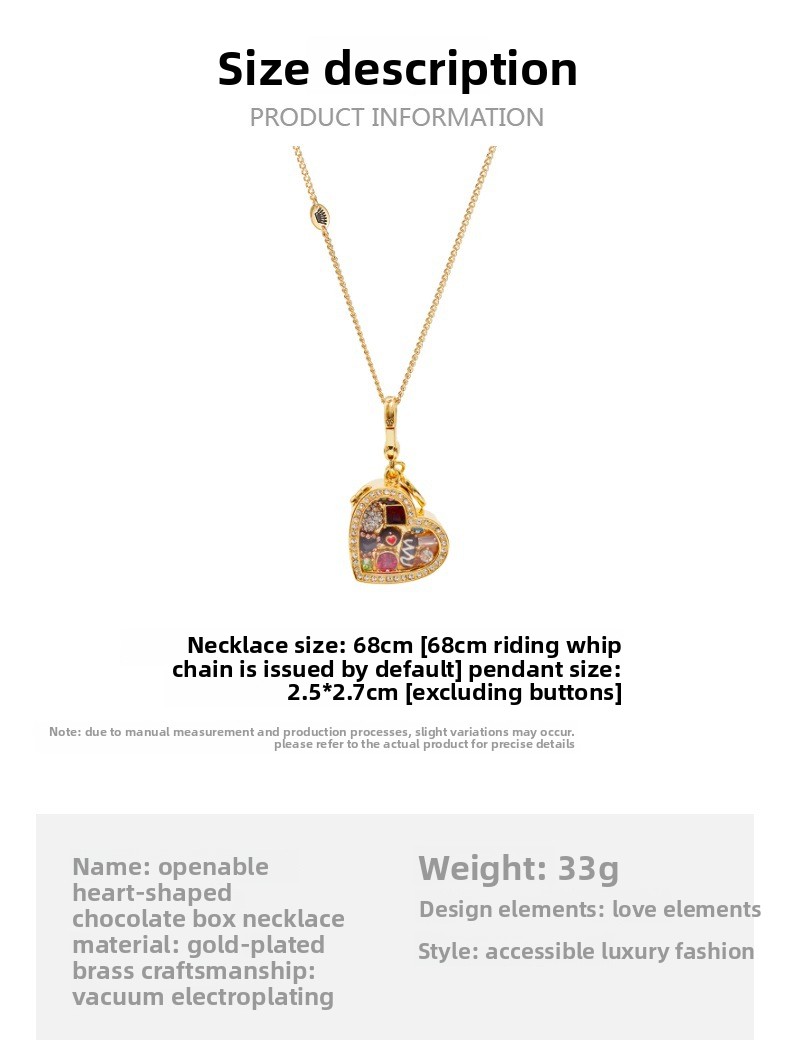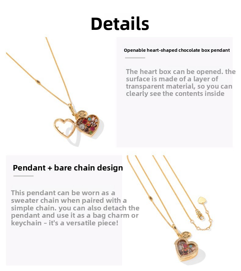 Heart-shaped Design: Elegant chocolate box pendant with openable feature for a unique charm.